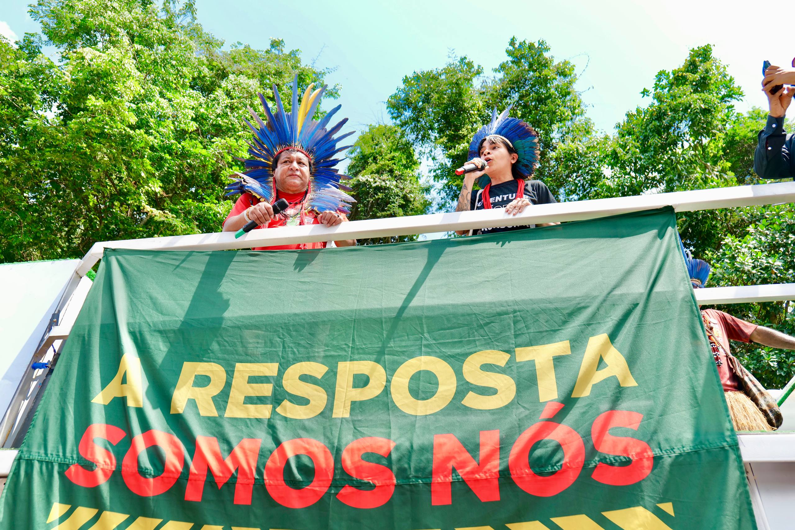 Ato destacou protagonismo indígena e cobra justiça climática; ministras Sonia Guajajara e Marina Silva reforçam…
