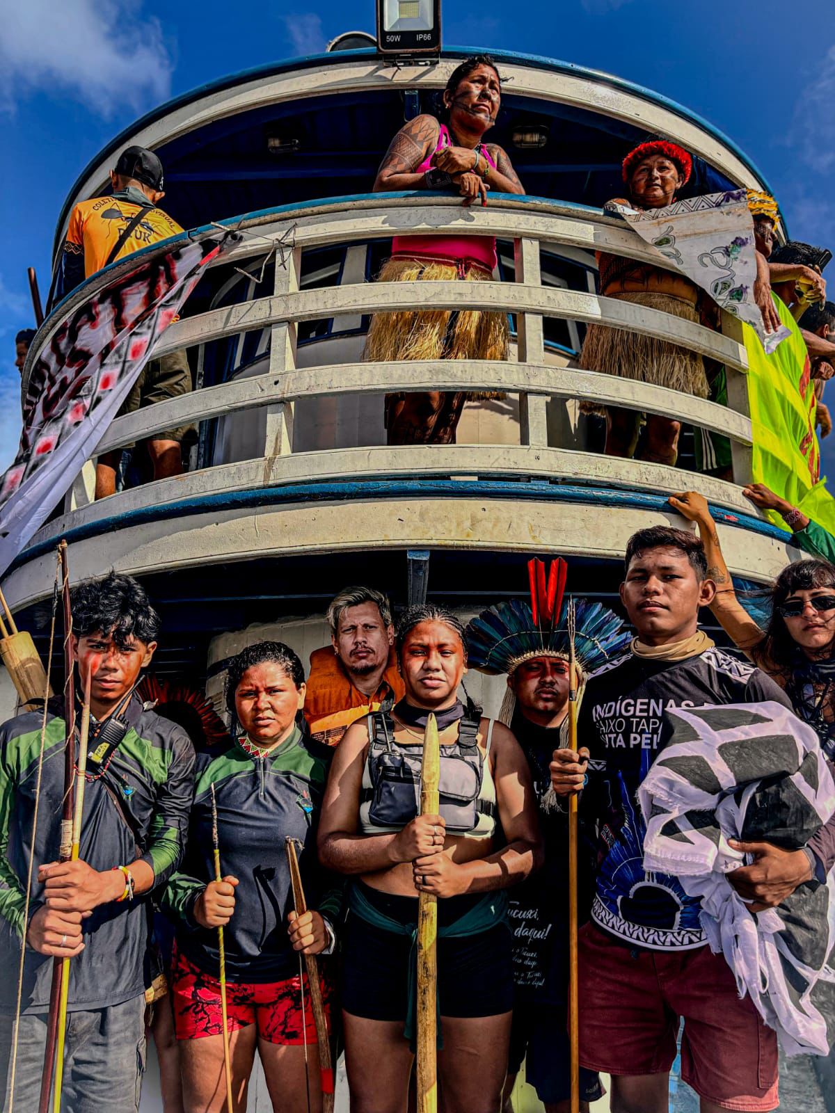 Essa barqueata indígena levou centenas de indígenas às águas do Tapajós em barcos, canoas e embarcações tradicionais. Participantes estenderam mensagens e palavras de ordem nas balsas, afirmando que os rios não são mercadorias e reiterando a exigência de que o governo revogue o decreto que coloca rios como o Tapajós, Madeira e Tocantins no Programa Nacional de Desestatização.